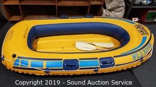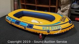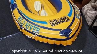 Item Description: Looks to be in good condition, been holding air. Comes with a couple paddles, no handles.
