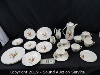 Lot #0345: 27pc. Gold Rooster Print Dish Set