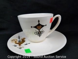 Item Description: 2 dinner plates, 8" round serving bowl, (3) 7" bowls, (3) 5.5" berry bowls, 5 snack plates, 4 saucers, 6 cups, cream, sugar, and teapot. Count does not include lids.