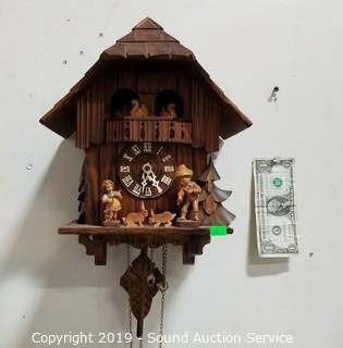 Item Description: In good working condition, functions as intended. 16" H x 10" x 8". Chimes/cuckoo's & plays a song and Squirrels dance every half hour.