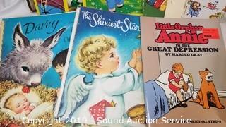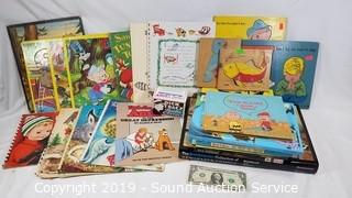 Item Description: Some of the children's books are vintage, various comic books, Dick Tracey radio classic cassettes, and puzzles (some are missing pieces). Refer to photos for more information.