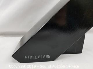 Item Description: The Farberware cutlery handle and blade are forged as one, with honing rod & knife block. Can opener is by Hamilton beach.