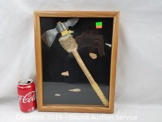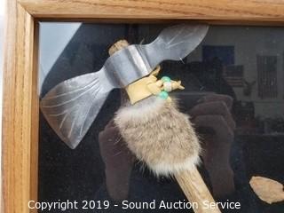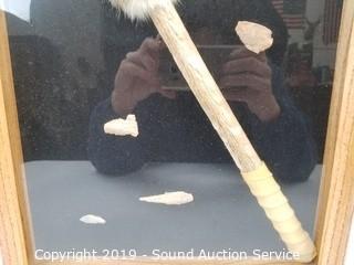 Lot #0034: Handcrafted Tomahawk w/Stone Arrow Heads &Display
