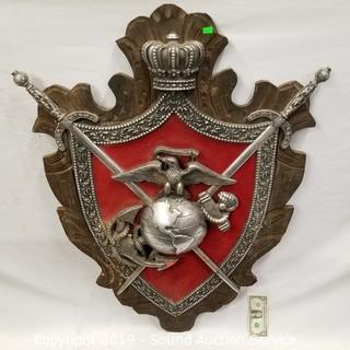 Lot #0132: Lg. Vtg. Marines Coat of Arms Plaque
