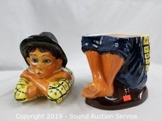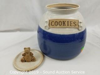 Lot #0256: Pair of Pottery Cookie Jars & Liquor Decanter