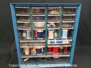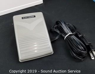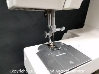 Item Description: Like new working condition. Comes with organizer (16" x 13" x 6-1/4") loaded with thread, scissors, sewing machine needle threader, buttons, elastic, safety pins, original purchase receipt, owner's manual, foot pedal and case.