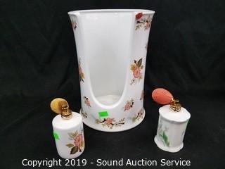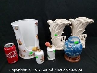 Lot #0328: Vtg. Perfume Bottles, Vases, Ginger Jar & Other