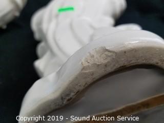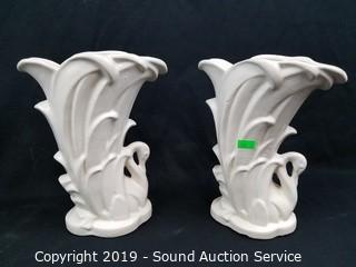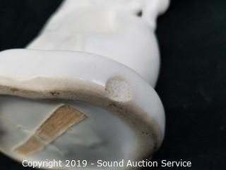 Item Description: Vase with hole in the side and perfumes are Royal Bavaria Germany. Lid on the urn has been repaired, by Fujita Kutani. Swan cornucopia vases both have chips at the bottom.