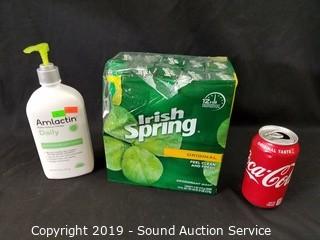 Lot #0077: 19pk Irish Spring Bar Soap & Amlactin Lotion