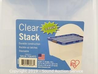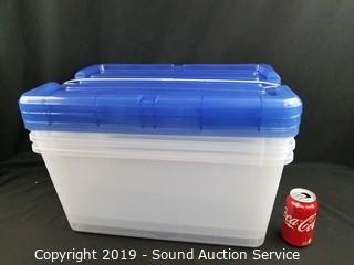 Lot #0153: 3 Clear Stackable 45qt Totes w/Lids