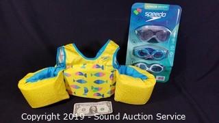 Lot #0139: 3pk Speedo Junior Swim Goggles & Child Belt Float