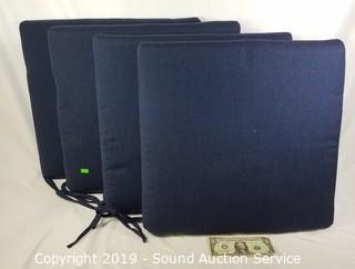 Lot #0353: 4 Sunbrella Blue Tie On Chair Pads