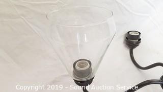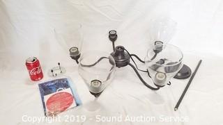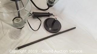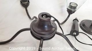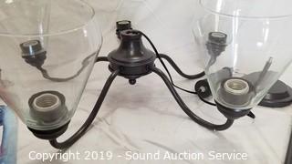 Item Description: Works, has been previously installed, glass shades, one shade is broken. Approx. 21" diameter, hangs down 36".