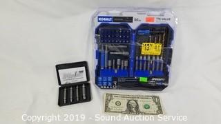 Lot #0294: Kobalt 50pc Bit Set & Screw Extractor Set