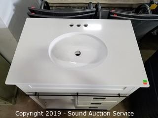 Lot #0006: Like New Tile Top 3-Drawer Vanity w/Sink