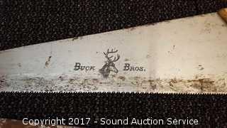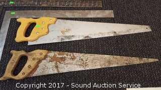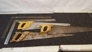 Lot #0137: 3 Hand Saws & 2 Framing Squares