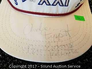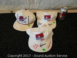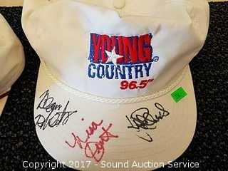 (2) of the hats looked to be signed by cast or crew of Young Country 96.5 Fm radio station other looks to be signed Andrea Tippett NFL player but cannot authenticate.