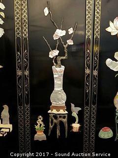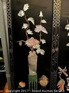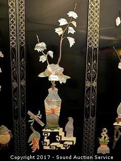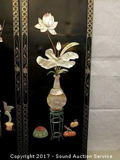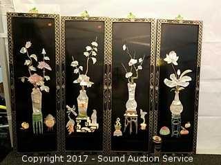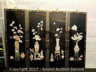 Lot #0218: 4 Asian Seashell Black Lacquered Art Panels