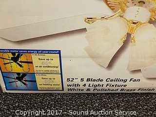 Lot #0208: 52" 5 Blade Ceiling Fan with 4 Light Fixtures NIB