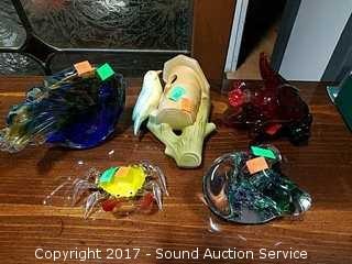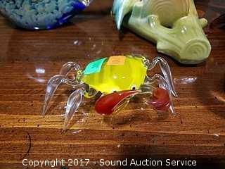 Bird is Made in Czechoslovakia, Hot Island Art Glass Fish, Crab & Flower