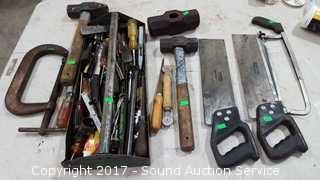 Sledgehammers, Hand Saw, Screwdrivers, Bits, Large C-Clamp, Files, Wrenches & More