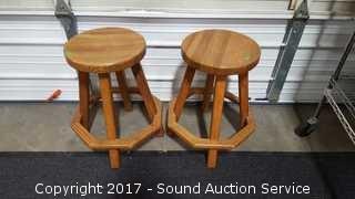 Lot #0192: Pair of Solid Oak Swivel Stools