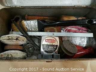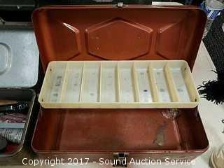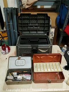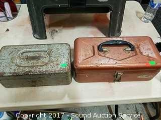 Includes: Metal tool box, metal tackle box loaded & Rubbermaid step stool/tool box.