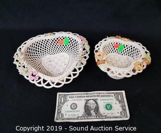 Lot #0040: 2 Belleek Floral Laurel Fine Porcelain Baskets