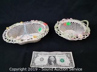 Lot #0044: 2 Belleek Floral Laurel Fine Porcelain Baskets