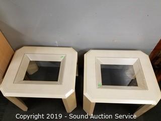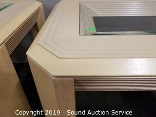 Lot #0006: 2 Ivory Finished Beveled Top Tables