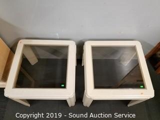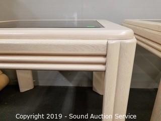 Lot #0008: 2 White Oak Beveled Glass Top Side Table
