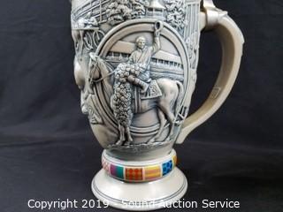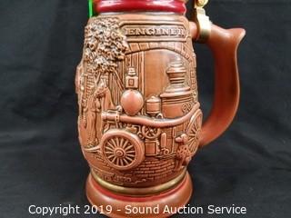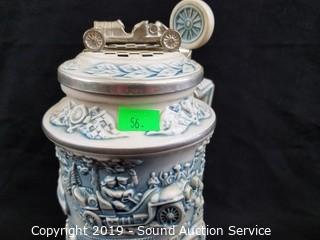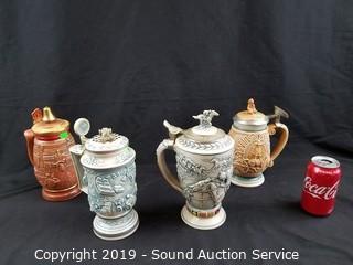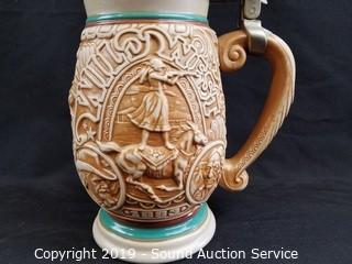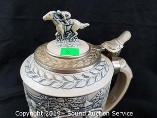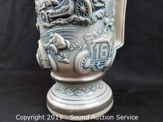 Item Description: Tribute to American Firefighters Stein, Racing Car Stein, Tribute to the Wild West Stein, Winner's Circle Stein. All handcrafted in Brazil. 9" to 10" tall.