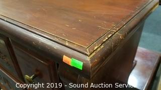 Item Description: Some wear to the finish, smells like cigarette smoke. Approx. 52" x 36" x 18".