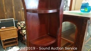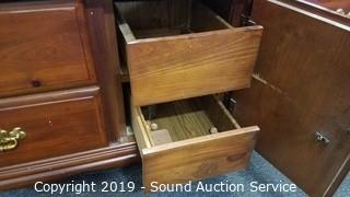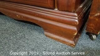 Item Description: Some wear to the finish. Lighted topper. Approx. 33 x 64" x 18" and 43" x 53" x 9" topper.