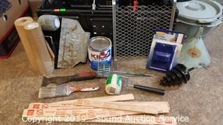 Item Description: Bucket, roller screen, rollers, masking taper, paint mixer, funnel, kilz2 32oz latex paint, paint edger, and more. Crate included, 9.5" x 23" x 16".
