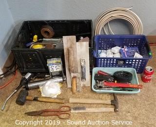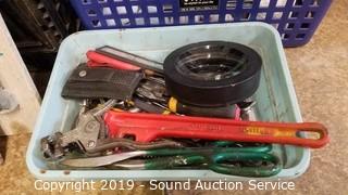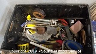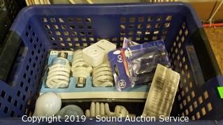 Lot #0337: Crate w/Various Tools & Light Bulbs