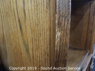 Item Description: Has a lift top, lower cabinet with vertical lift door. 54" H x 32" W x 25" D. The top lid on corner has come apart needs repaired, still functions.