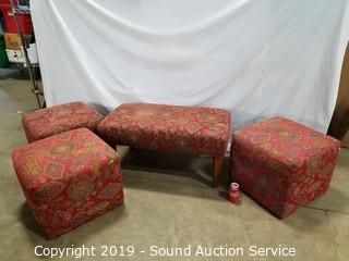 Lot #0163: 3 Fabric Cushioned Ottomans & Bench