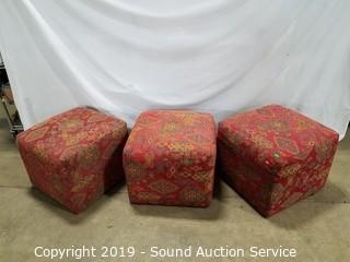 Item Description: Ottomans are approx. 16" x 20" x 20". Bench is approx. 18" x 20" x 36".