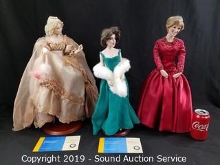 Item Description: All come in original packaging. Includes: Ashton Drake Galleries Princess Diana no COA, Franklin Mint Elizabeth Taylor with COA, and Franklin Heirloom Cinderella After the Ball with COA.
