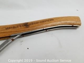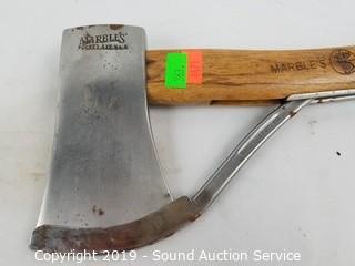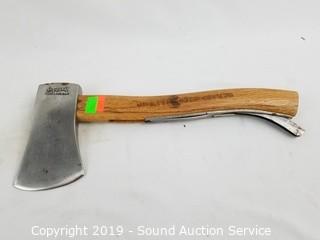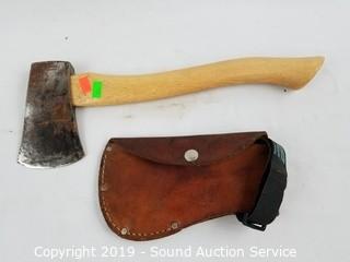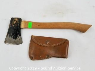 Item Description: Marbles Pocket Axe #6, built in blade protector. Super Banko w/Leather sheathe. L.L. Bean? miniature hatchet. 10" to 14" long.