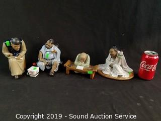 Lot #0339: 3 Vtg. Chinese Wanjiang Mud Man Pottery Sculptures