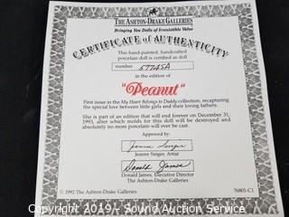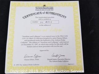 Item Description: All come in original packaging. Includes: What Little Girls Are Made Of "Sunshine Lollipops" with COA, My Heart Belongs to Daddy Collection "Peanut" doll with COA (head is loose), Symbols of Love Collection "Joyous Wedding Bells" with COA, and other no COA.