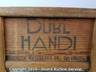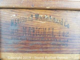 Item Description: National Washboard Co., Dubl Handi, Carolina Washboard Co., & other. 16" x 8" all similar in size. Cheap Junk sign 35" x 8" & Murphy Harmonika 19" x 7".