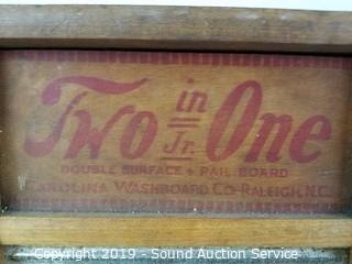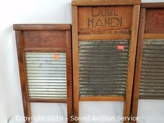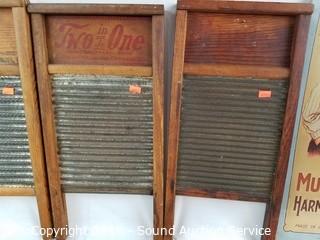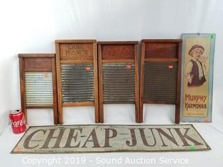Lot #0290: 4 Vtg. Wood Washboards & 2 Tin Signs