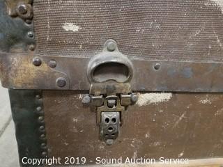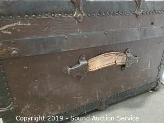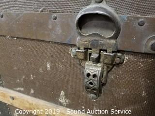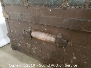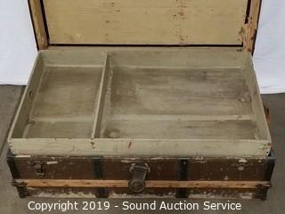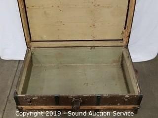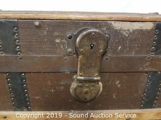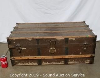 Lot #0059: Antique Wood Banded Steamer Trunk