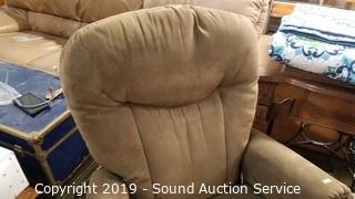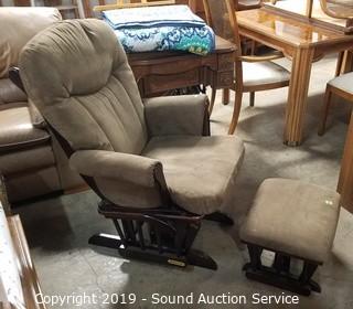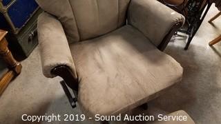 Lot #0103: Gliding Microfiber Upholstered Chair & Ottoman