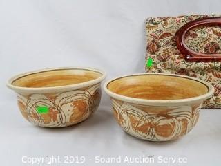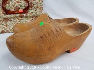 Lot #0197: Hand Crafted Wood Clogs, Pottery Bowls & More