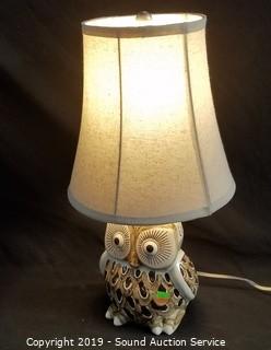 Lot #0317: Hand Painted Porcelain Owl Base Table Lamp