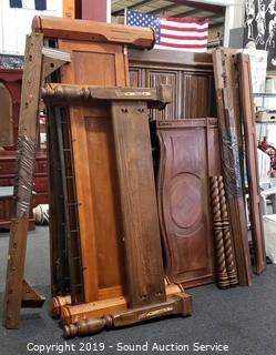 Lot #0176: Lg. Lot of Vtg. Wood Headboards, Footboards, Rails